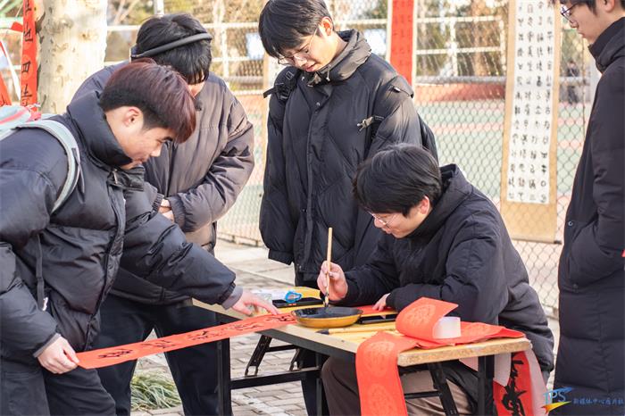 活动中,由于天气寒冷,砚台里的墨水都已经结了冰,可书美协会的各位成员却依旧笑着为同学书写对联。他们不仅展现了出色的书法技巧,还融入了各自的个性和风格,让每一副春联都充满了独特的魅力。他们用笔墨传递祝福,为学校带来了浓浓的年味同时也让广大同学感受到了中国传统文化的魅力。