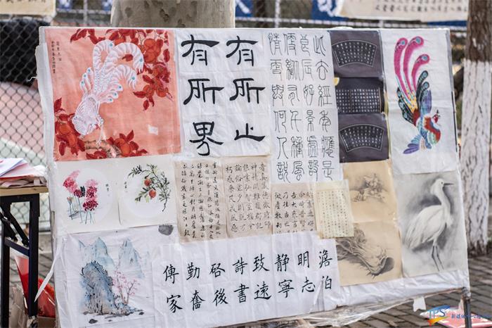 书美协会副会长王广顺积极向大家介绍:“我们的送春联活动为大家准备了各式各样的春联,包括传统的对联和现代的创意对联,内容涵盖了新年祝福、励志寄语、家庭和谐等多个方面。”道路旁也挂起了各式各样的书法字画以及春联,皆是由书美协会的各位成员所作。书美协会的成员还特意准备了精美的小礼品,赠送给积极参与活动的同学们。协会的书法老师们也在现场为大家提供了书法指导,让大家能够亲自体验书法的魅力,现场气氛十分热烈。