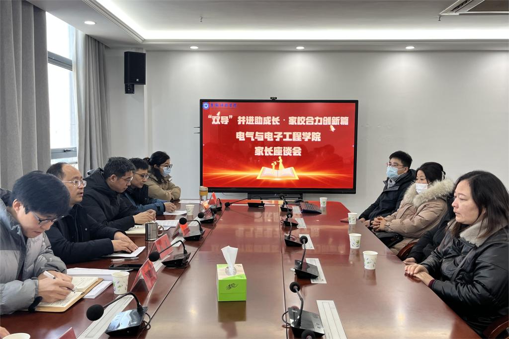 电气与电子工程学院通过学生朋辈帮扶,专业教师学科引领形成“双导”制,同时,探索“双导”与家校联合培养的新模式。为增进家长对学校的了解,促进家校沟通交流,12月中下旬学院开展家长进校园系列活动。