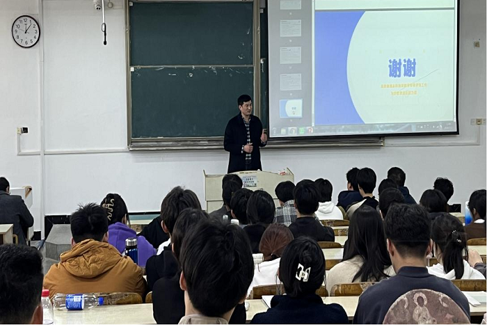 王广良作动员讲话,他指出,本次本科教育教学审核评估对于学校发展和师生个人发展的重要意义,并针对本科生教育教学审核评估重点工作提出了三点要求,一是要提高认识,加强学习。同学们要高度重视本次审核评估的重要性,围绕审核评估手册三方面内容,加强对审核评估基础知识、校史校情、评估期间应注意事项进行学习,达到内化于心、外化于行的效果。二是要发挥作用,落实任务。各班委要增强身份意识,发挥模范作用,积极学习本次审核评估的知识,每个班级结合课件、手册,进行针对性强的学习活动,做到任务分解,高质量、高标准地将审核评估应知应会知识学习落实到实处。三是要积极谋划,高效推进。各班级后续通过对审核评估知识的学习进行专题测试与督查,在班级、学院范围内实现认识到位、责任到位、学习到位的浓厚评建氛围。