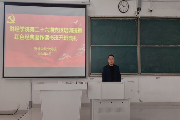 4月10日下午,财经学院分党校第26期党校培训班暨红色经典著作读书班开班典礼在致知楼C111教室举行。学院党委副书记、纪委书记耿广汉出席并讲话,各学生党支部书记,学生入党积极分子和青年教师入党积极分子参加会议。会议由学院党政办公室主任张俊主持。