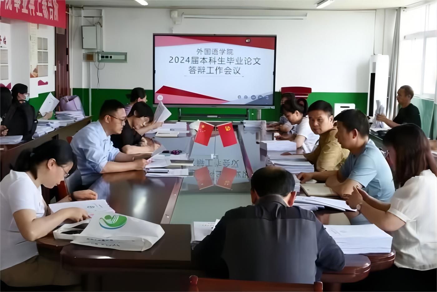 根据有关文件要求,为做好2024届本科生论文答辩工作,5月22日下午,外国语学院在学院会议室召开2024届本科生毕业论文答辩工作会议。院长刘萍和所有论文指导教师参加会议,会议由副院长洪民主持。