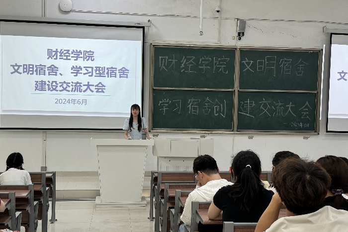为进一步全面做好学生宿舍管理工作,规范学生宿舍管理内容,不断提升“三全”育人质量,扎实推进寝室文明建设,6月12日,财经学院在致知楼A111召开文明宿舍、学习型宿舍创建交流大会。学院党委副书记耿广汉出席并讲话,学院全体生活委员、2023级寝室长参会。