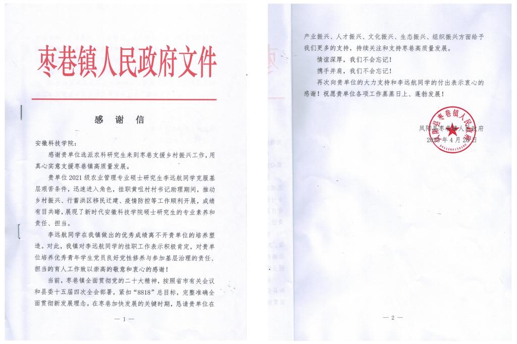 该同学在挂职期间的优异表现受到了枣巷镇人民政府的高度肯定,充分表明了学校助力地方社会经济发展与全面推进乡村振兴工作的扎实举措,促进了我校研究生教育人才培养模式的创新,展示了我校过硬的人才培养质量以及研究生教育立德树人的品质品行。(特约通讯员:马晓辉审核:张春雨 胡文靖 编辑:李锦)