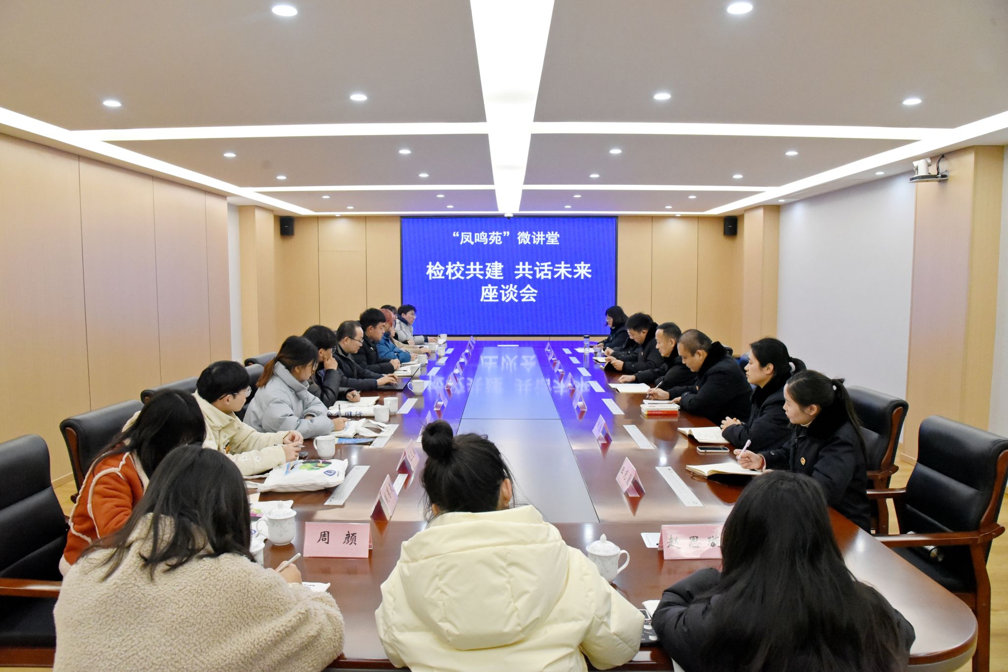 座谈会由凤阳县检察院党组副书记、副检察长方晓峰主持。同学们与检察官们先就一起盗窃案的定性、证据、事实等内容进行了热烈的分析探讨。在交流环节,现场的老师及同学们围绕法学专业学生关心的就业选择、法考的重要性和优势,以及如何在大学阶段培养和提升法律实务素养等几个热点话题,向与会检察官们进行了咨询。检察官们结合实际案例与个人经历,为同学们提供参考建议。