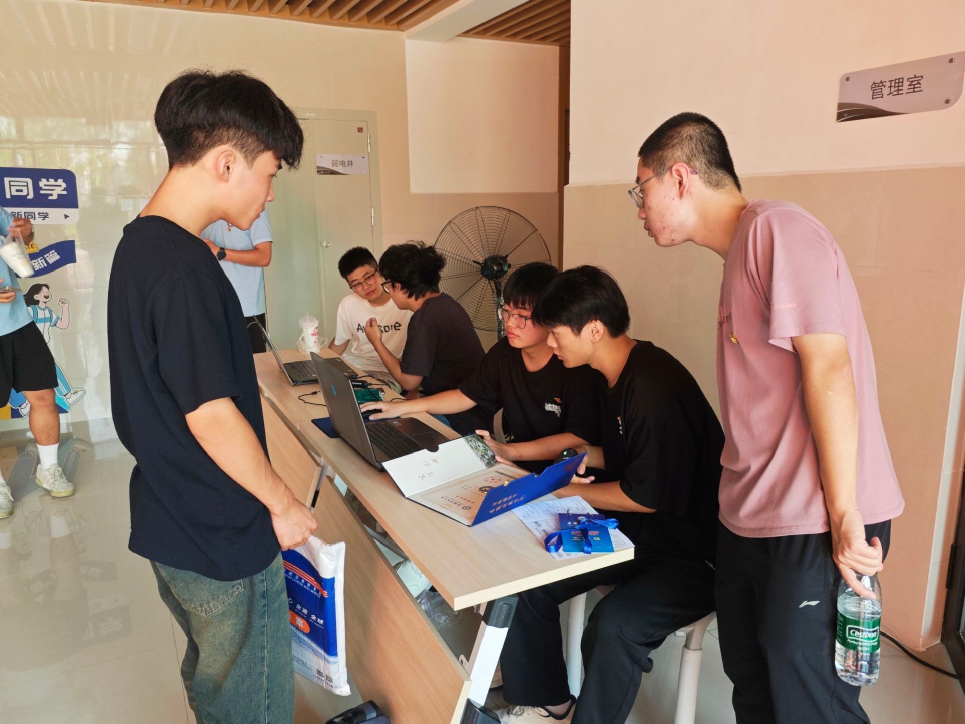 迎新现场,各宿舍报到点秩序井然、高效运转。辅导员耐心解答新生关于专业学习、校园生活的疑问,细致核对报到信息;助理辅导员、志愿者、学生党员等学生群体穿着志愿服,热情上前帮新生搬运行李,并贴心分享宿舍生活小贴士;整个报到过程井然有序、衔接顺畅,充分体现“平稳、有序、高效”的工作目标。