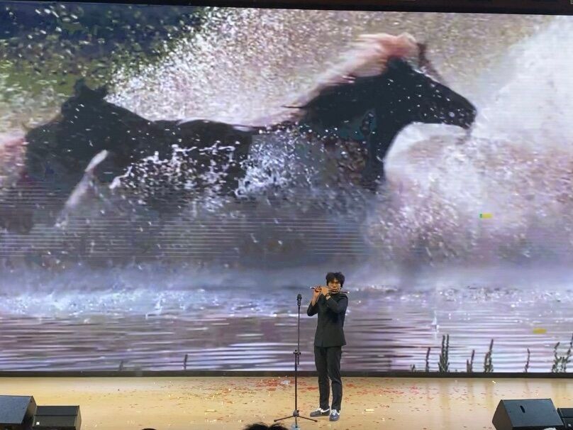 迎新晚会在充满青春动感的舞蹈《玫瑰人生》中拉开了序幕。