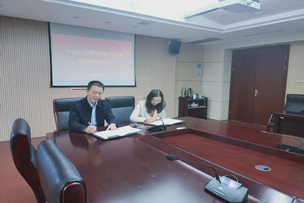 1月14日,我校与宁波北仑区就业合作签约仪式在北仑区人社局举行。招生与就业工作处处长施培智与北仑区人力资源和社会保障局副局长陈剑君代表双方签订协议。