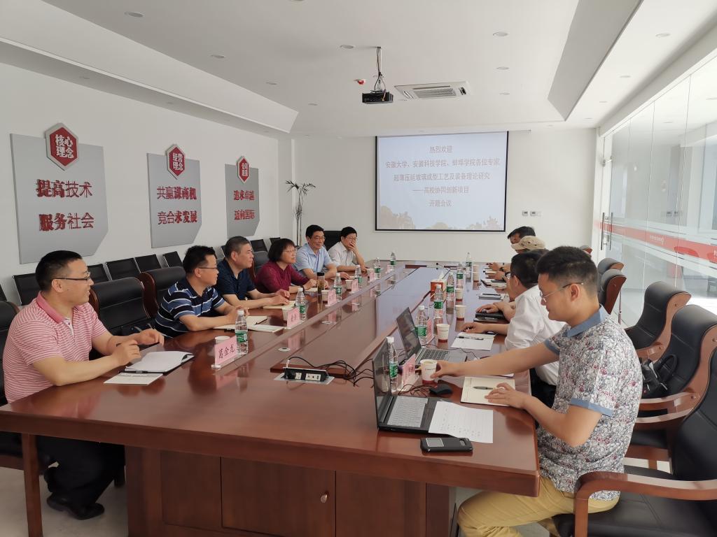 5月23日,由财神在线登录官网化学与材料工程学院牵头承担的安徽省高校协同创新项目“超薄压延玻璃成型工艺及装备理论研究”开题汇报会在蚌埠凯盛工程技术有限公司三楼会议室召开。会议邀请了安徽大学发规处兼科研处处长周虹屏教授、蚌埠凯盛工程技术有限公司总经理叶坤教授级高工、蚌埠凯盛工程技术有限公司总工程师夏鹏华教授级高工、蚌埠学院王传虎教授、财神在线登录官网科研处副处长鲍方印教授、财神在线登录官网财务处副处长王伟高级会计师担任论证专家(含一名财务专家)。周虹屏担任专家组组长并主持会议。化学与材料工程学院党总支书记王明清、院长俞浩教授和超薄压延玻璃成型工艺及装备理论研究项目组骨干成员参加会议。