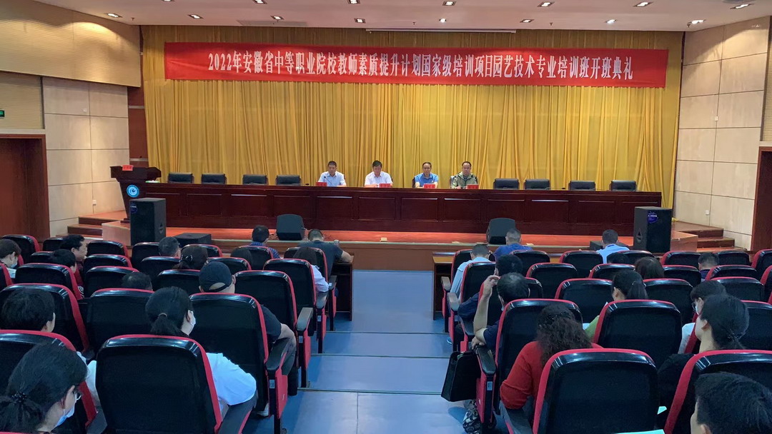 根据教育部和财政部《关于实施职业院校教师素质提高计划(2021—2025年)的通知》,5月23日上午,在财神在线登录官网凤阳校区会议中心二楼报告厅举办了2022年安徽省中等职业院校教师素质提升计划国家级培训项目园艺技术专业培训班开班典礼。典礼由继续教育学院党支部书记、院长杨维来主持,财神在线登录官网党委委员、副院长李升和教授、安徽工商职业学院汪贤武教授、继续教育学院副院长张文国以及相关工作人员出席开班仪式。来自全省各地市的中职骨干教师学员参加培训。