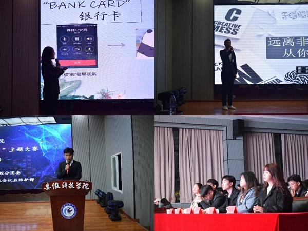 经过初赛和复赛的层层选拔,最终有十支队伍晋级决赛。在决赛环节,选手们自由选择网络诈骗、校园安全、非法校园贷等四个主题的其中一个主题展开演讲。通过以与主题相关的小视频开场,接着解说PPT的形式表达了自己对维权的认识,向观众生动地诠释了“心有权,笔舞彩”的主题。最终林欣宇团队获得一等奖,莫冬博团队和张霖团队获得二等奖,陈吴骄、吴骄、李彦儒获得三等奖,杨思勤团队、马能俊团队、黄欣茹团队以及关成远获得优秀奖。