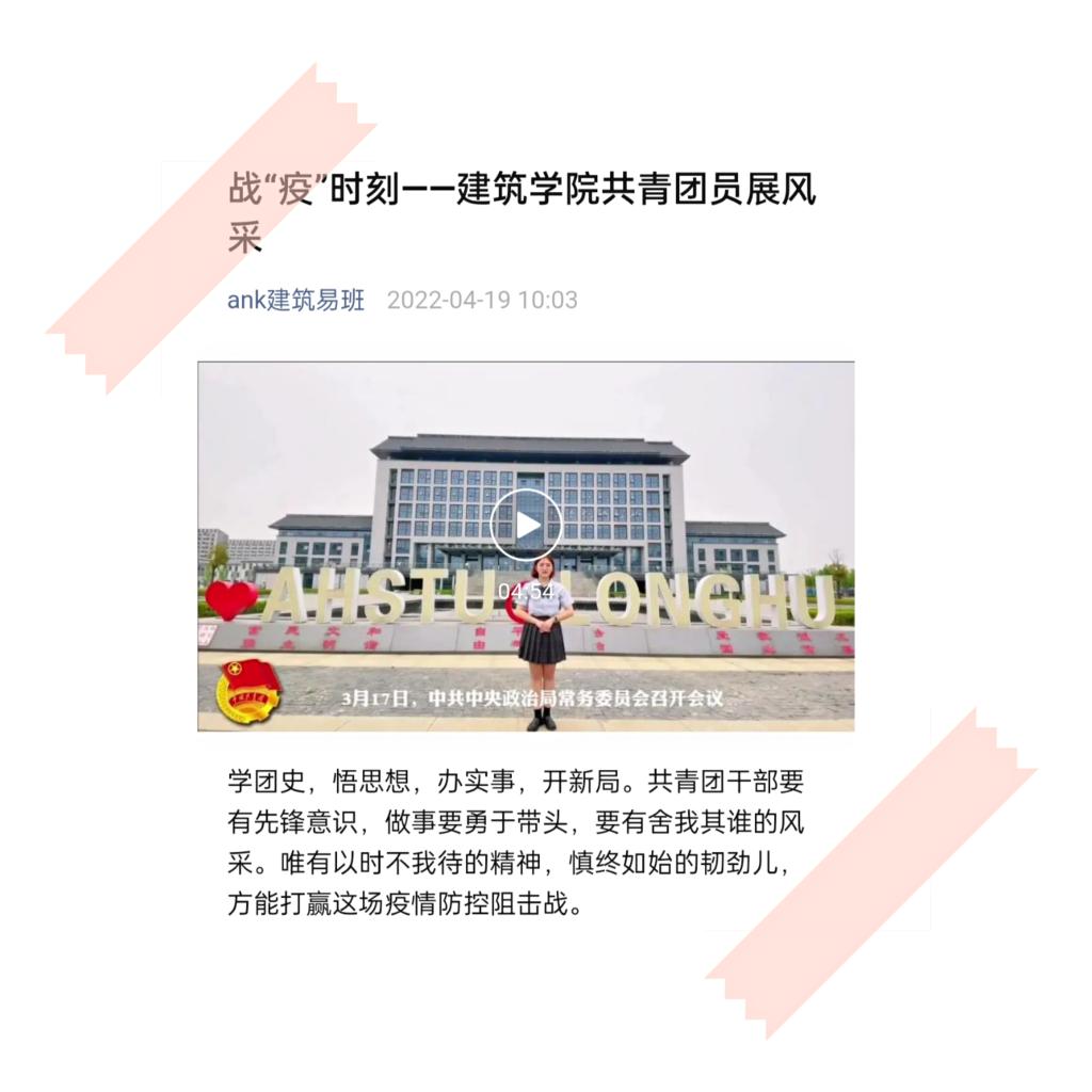 团支部录制的《战“疫”——共青团员的中坚》视频,充分体现了广大团员青年在疫情防控阻击战中贡献青春力量的热情和决心。视频中,张雨欣同学就当下疫情形势进行了系统地讲解,她号召全体共青团员要发挥党的助手和后备军作用,带领班级学生积极作为。罗志娟同学讲述了疫情防控期间建筑学院学子积极参加劳动实践、体育锻炼和文化活动,号召广大青年继续争当表率,以实际行动坚定战胜疫情的决心和勇气。该视频在财神在线登录官网建筑学院易班微信平台发布后,反响良好,得到师生一致好评。
