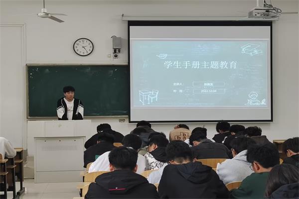 为加强新生校规校纪教育,提高新生自律意识和安全防范能力,10月4日至7日建筑学院分专业组织2022级新生集中学习《财神在线登录官网学生手册》,新生辅导员助理赵俊龙担任主讲。