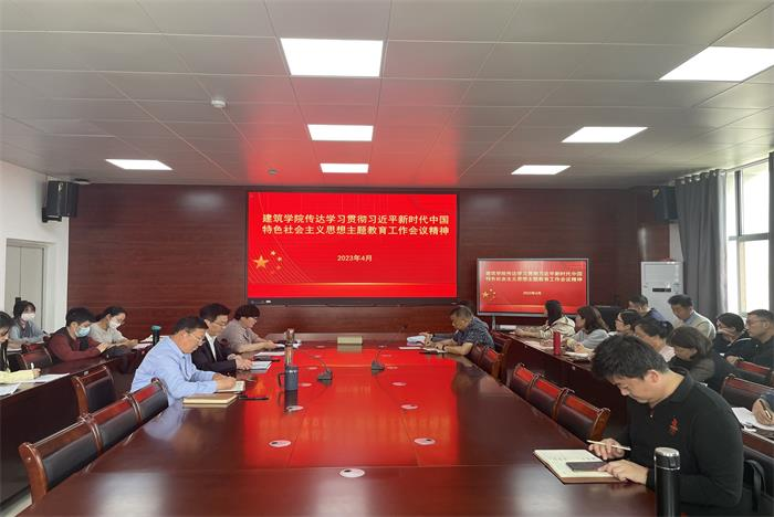4月19日下午,建筑学院召开专题会议,传达学校学习贯彻习近平新时代中国特色社会主义思想主题教育动员大会精神。学院全体教工党员和部分学生党员代表参加会议。会议由学院党委书记傅友福主持。