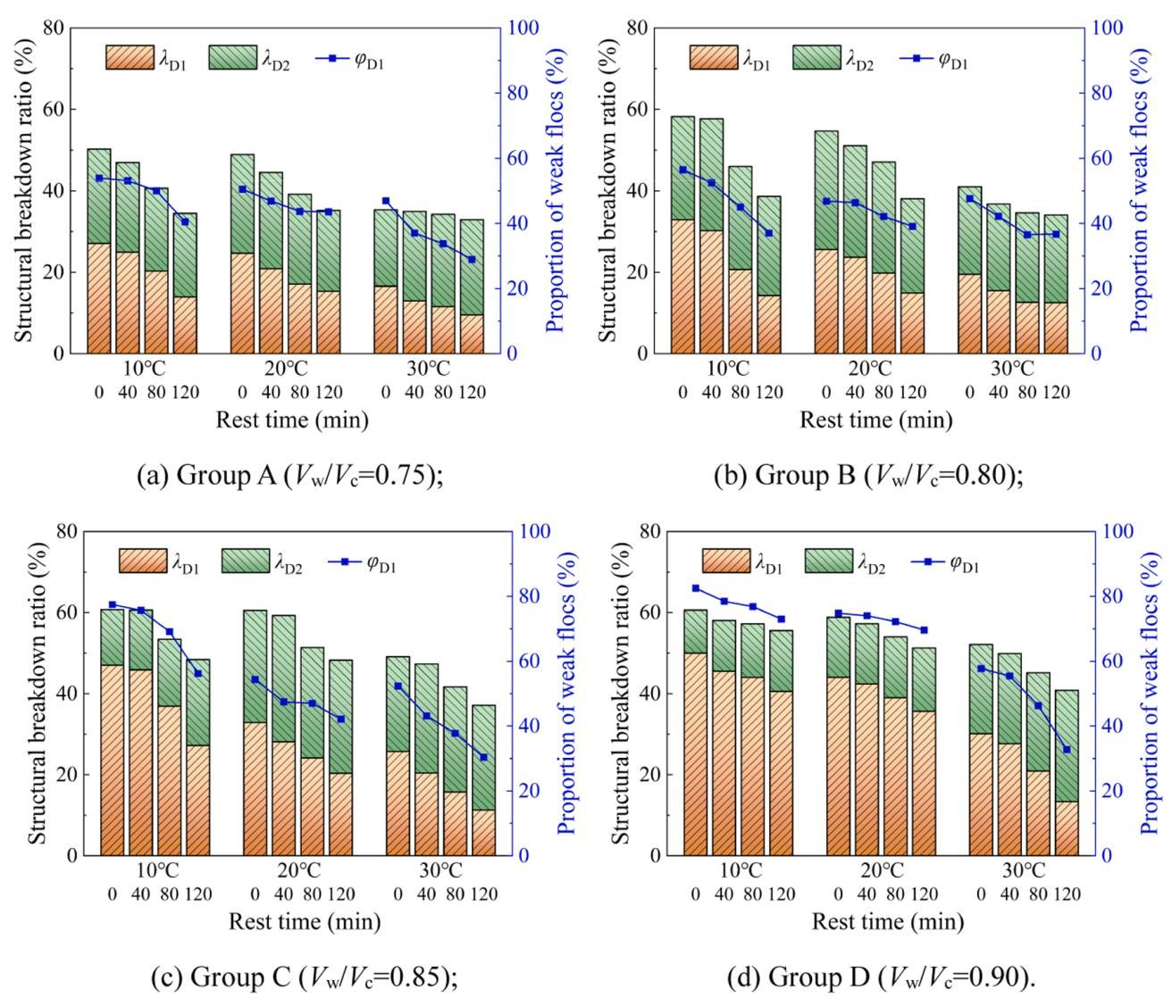 水泥混凝土和易性是影响建筑施工质量的重要因素,和易性调整失误会导致混凝土出现流动性不足或离析泌水等问题并导致工程事故。为更好地对新拌混凝土的和易性进行调整,本文针对水泥混凝土触变性的影响因素进行研究,揭示了触变性和个流变参数的内在关联。研究发现:静置时间长、温度高、固相体积分数大的水泥浆体屈服应力大、强絮凝多、触变性可逆性差;撤除施加的外力后浆体再结构化的能力主要由弱絮凝决定,与强絮凝关联性较低;浆体屈服应力测试结果受测试过程的影响,再絮凝能力强的浆体受到的影响更大。
