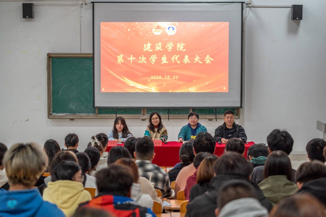 10月23日,建筑学院第十次学生代表大会在敏行楼C102报告厅顺利召开。建筑学院党委副书记谢宜勤出席大会并致辞。学院团委书记沈德艳、大会主席团成员、学生代表参加大会。会议由学生会指导老师武辉主持。