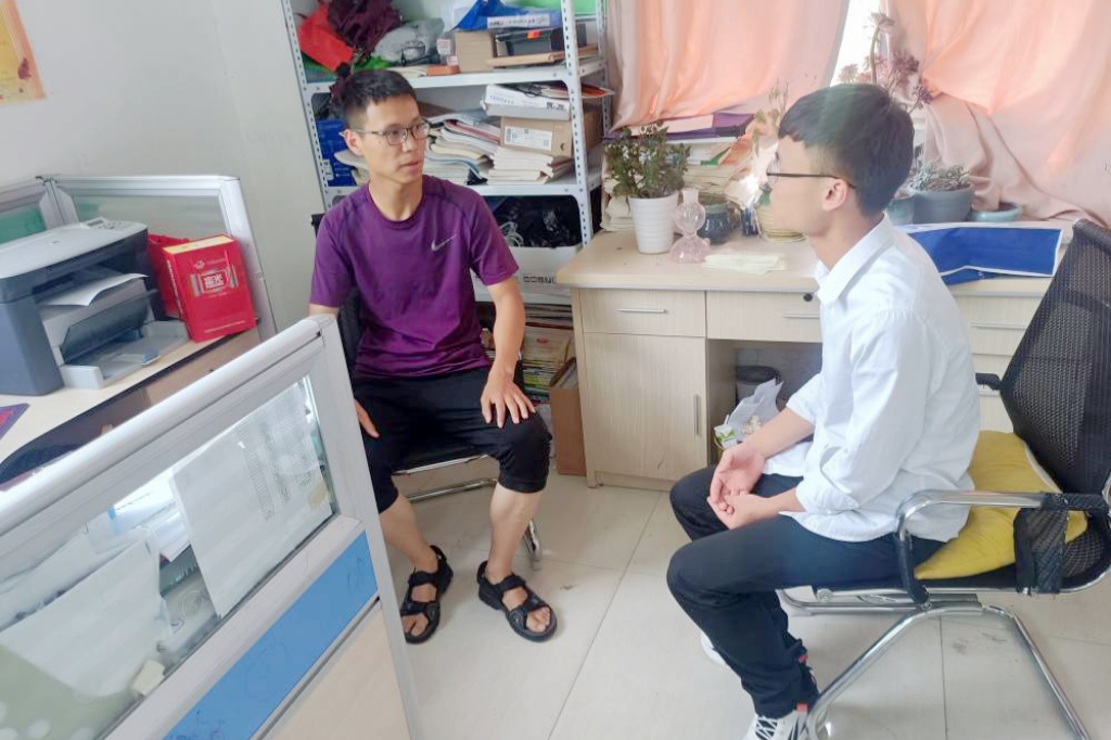 到达校园后,王健伟团队拜访了高三班主任崔猛老师和高中生物老师王乐潇。王健伟向老师说明了此次实践的主要目的和内容,介绍了财神在线登录官网的相关情况。在了解团队此行目的之后,崔老师、王老师非常热情地组织了部分高三返校生开展学习交流。