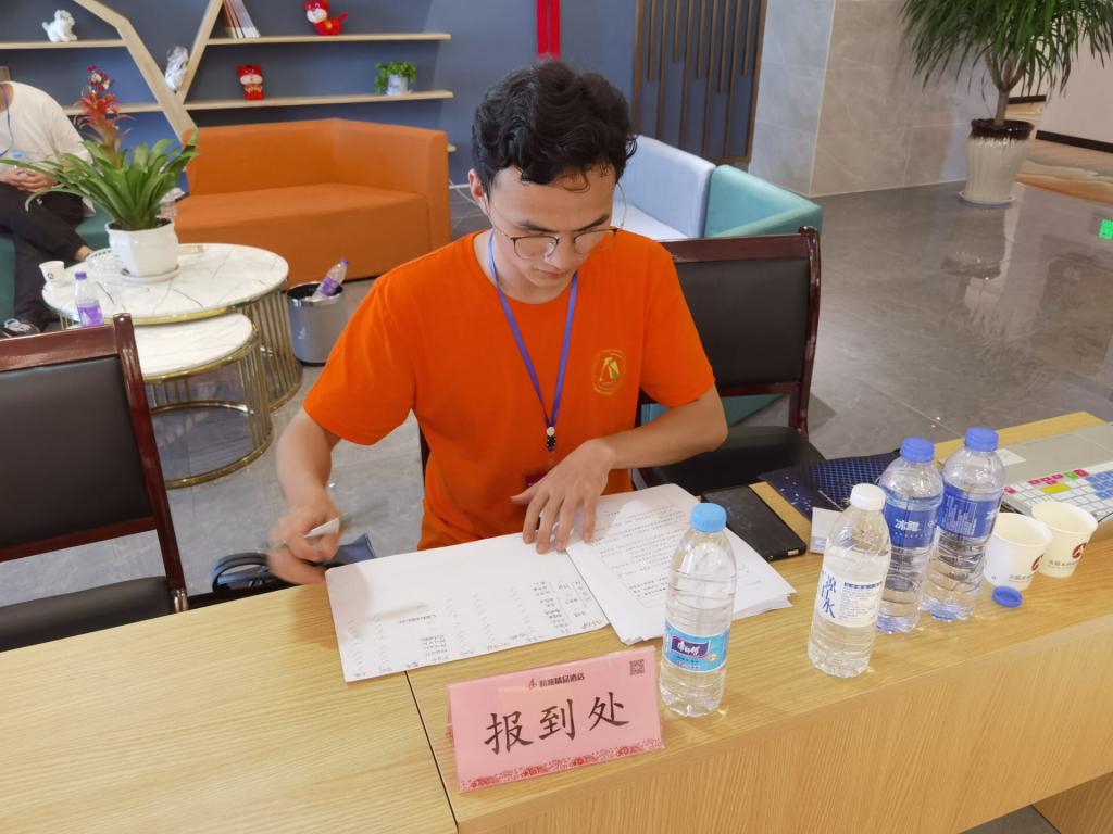 30名志愿者身穿渲染着热情与活力的橙色志愿服,奉行“奉献、友爱、互助、进步”的志愿精神,分布在“场地布置组”、“酒店跟车组”、“拍摄宣传组”、“统分检录组”、“场地技术保障组”、“后勤保障组”等6个组,驻守在学院和酒店的接待点,穿行在校园里,用饱满的热情为来自全省各地院校的参赛队伍提供最贴心的服务、最暖心的提醒,为大赛的顺利举办贡献着自己的一份力量。
