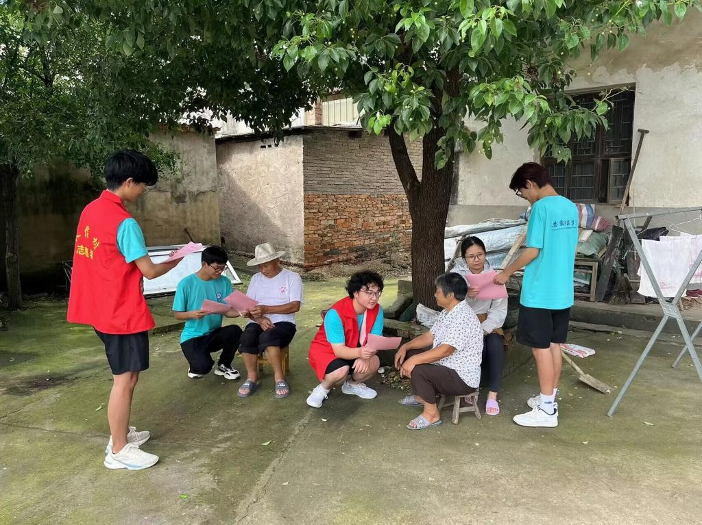 为有效将防溺水的宣传工作贯彻落实到更多村民,团队成员在当地政府工作人员的带领下,深入村庄开展防溺水宣讲活动,发放防溺水宣传材料,向居民普及基本的防溺水知识。团队成员从为什么需要防溺水、如何有效地防范溺水、家长如何加强对孩子的监督等方面入手,深入浅出地传达信息,确保村民对于水上活动的安全隐患有更深刻的认识。通过多样化的宣传方式,村民们不仅增强了安全意识和自救能力,还能够传递所学知识,确保家人安全。