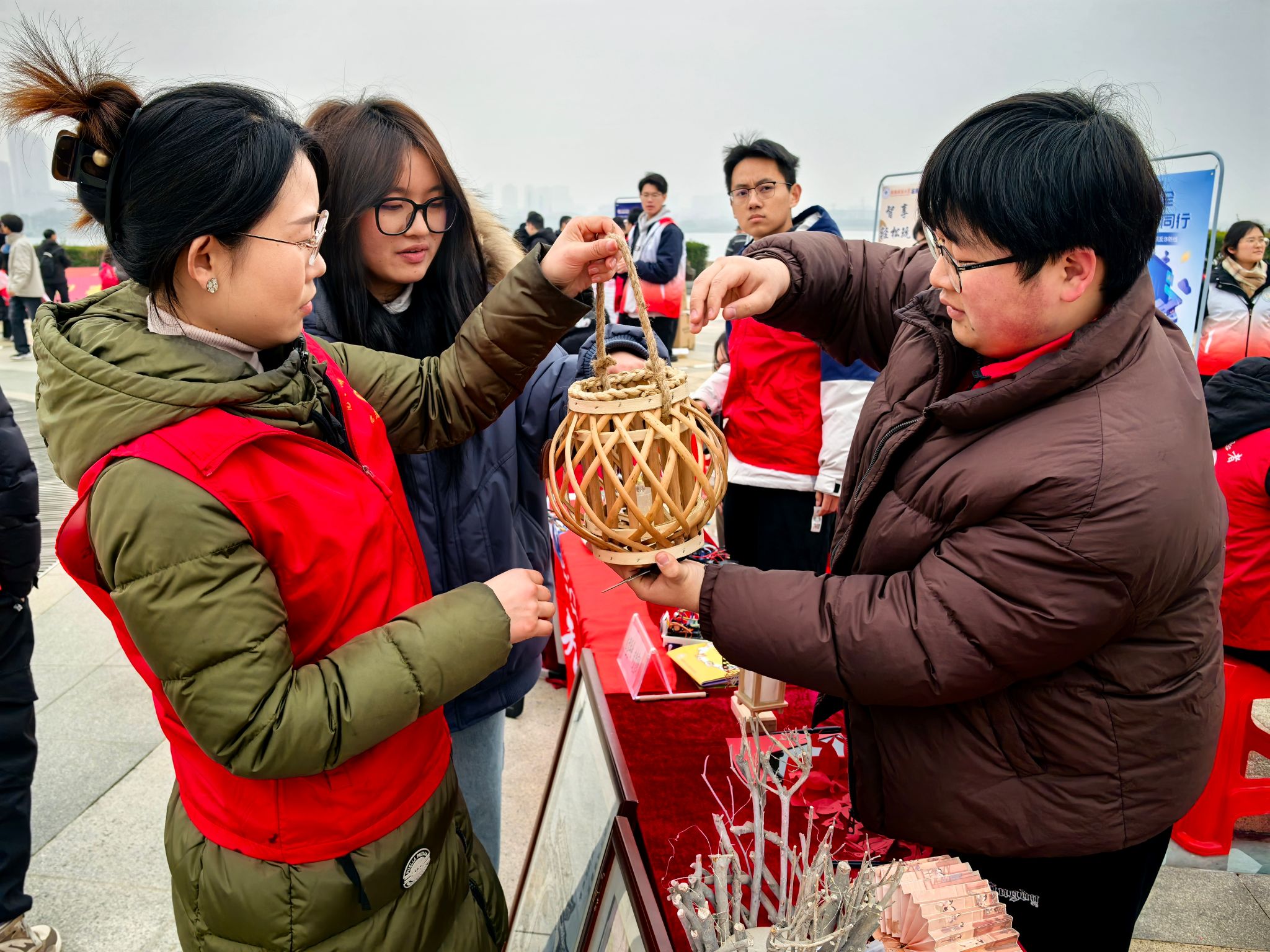 志愿服务一:参加2025年蚌埠市“学雷锋”青年志愿服务示范活动。在龙子湖公园,学院志愿者们向市民介绍了大学生制作的建筑模型、植物标本以及环保手工品等成果。在交流互动中,志愿者不仅成功传播了专业知识,更点燃了大家对自然科学和创意手工的浓厚兴趣,让更多人真切感受到知识与艺术交融碰撞所产生的独特魅力。