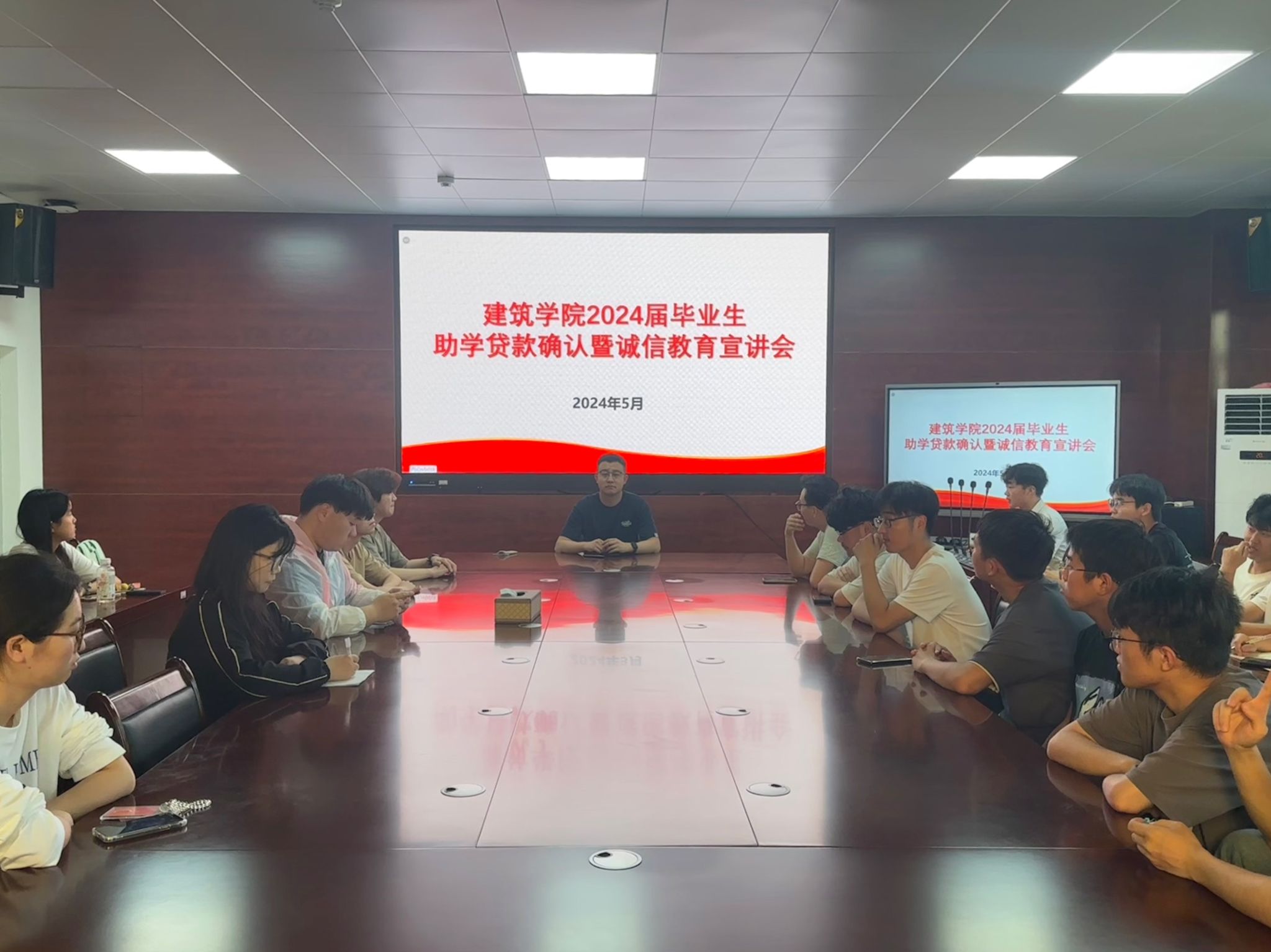 为更好地落实国家助学贷款政策,强化毕业生诚信还贷意识。5月23日下午,建筑学院在尚行楼A301召开了2024届毕业生助学贷款诚信教育宣讲会。会议由学院资助负责老师王明哲主持,2024届全体有助学贷款毕业生参加会议。