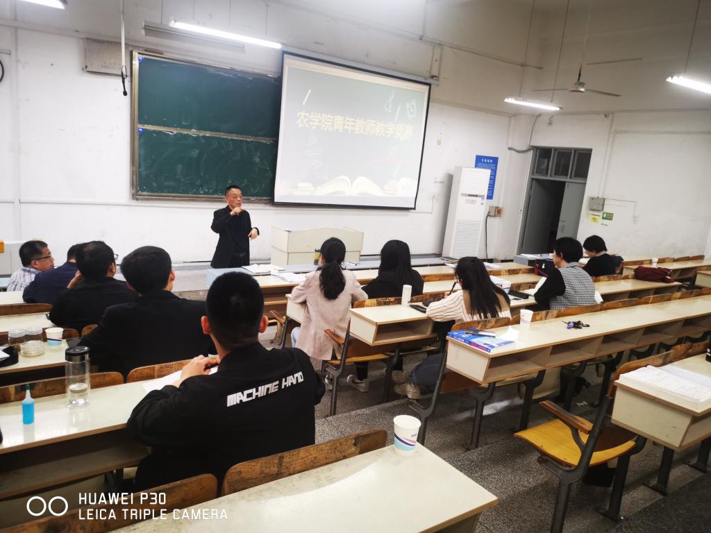 为进一步提升青年教师教学能力,帮助青年教师共同成长,备战学校第七届青年教师教学竞赛,4月19日下午,农学院在求知楼A102举行青年教师教学竞赛。特邀学校服务地方发展研究院院长詹秋文教授、动物科学学院程郁昕教授、机械工程学院姚智华副教授、生命与健康科学学院马玉涵副教授、农学院邵庆勤副教授担任评委,农学院近三年入职青年教师参加比赛。