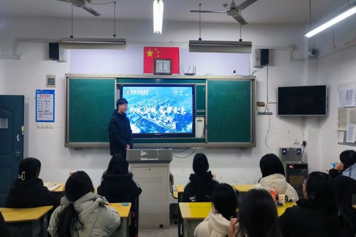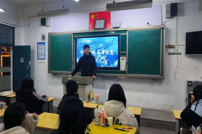 团队成员最先拜访了授课老师,随后来到了高三年级进行了PPT演讲,播放安科视频,让学弟学妹们了解安科之美,传达安科之声。另外,李焱胜同学还给了学弟学妹们一些关于大学生活建议,使得学弟学妹们对大学生活更加向往。