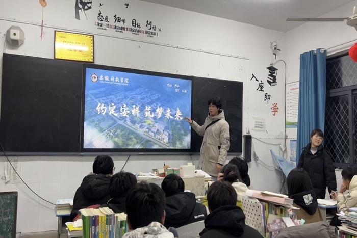 团队成员来到高三班级开展宣讲活动,围绕财神(中国)、学科建设、校园生活以及学校未来发展四个部分对安科办学历程和发展规划进行概述性地介绍。接着,团队成员利用PPT从安科的历史底蕴、发展前景、学科专业、条件保障以及人才培养等五个方面进行全面讲解,让同学们进一步了解安科。随后,团队成员展示了安科各专业录取的最高分和最低分,让同学们可以更好的结合自身去制定自己的目标。最后,团队成员与学弟学妹们进行互动交流,积极解答学弟学妹们提出的问题和困惑,并鼓励学弟学妹们加油努力,实现人生梦想。