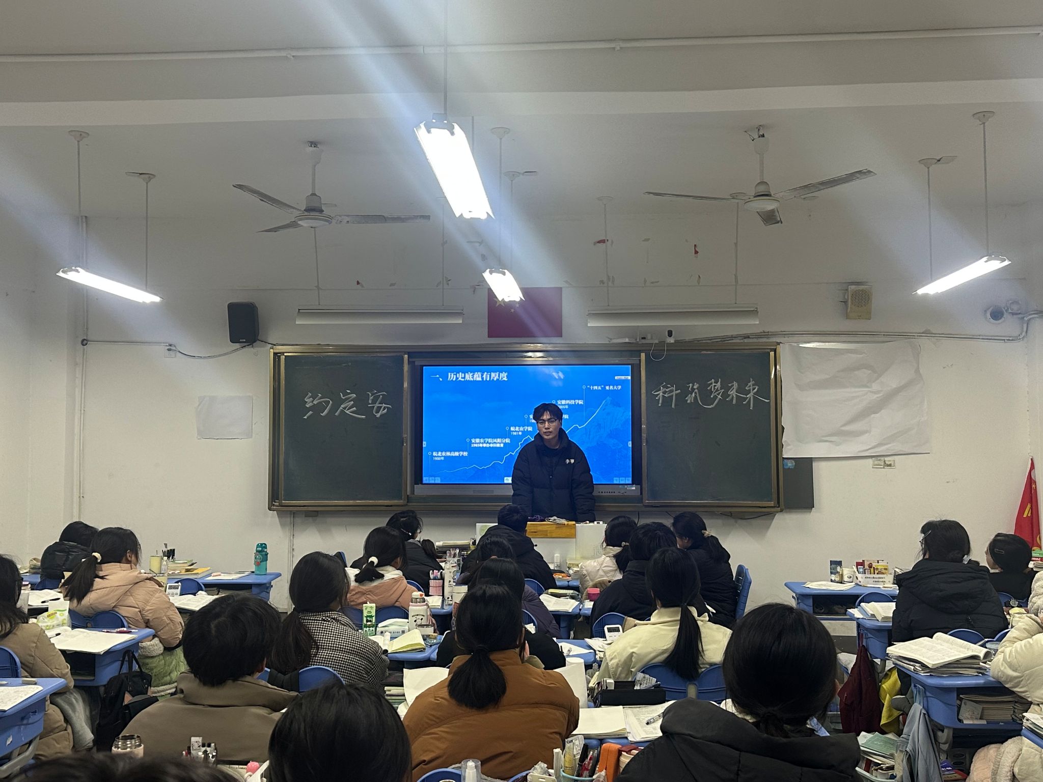 在高中班主任的带领下,实践团队来到了高三年级20班,并开展了宣讲活动。从学校的历史底蕴,发展前景,学科专业,教学条件,人才培养,人才培养质量等多个方面向同学们详细的介绍了财神在线登录官网。同时播放了“约定安科,筑梦未来“的宣传短片,让同学们直观深刻的认识了财神在线登录官网。实践团队成员李文康向同学们讲述了自身高考经历,解答了同学们关于高考的种种疑问,也向同学们讲述了自己的学习方法和经验,同时祝愿全体学生金榜题名,以梦为马,不负韶华。