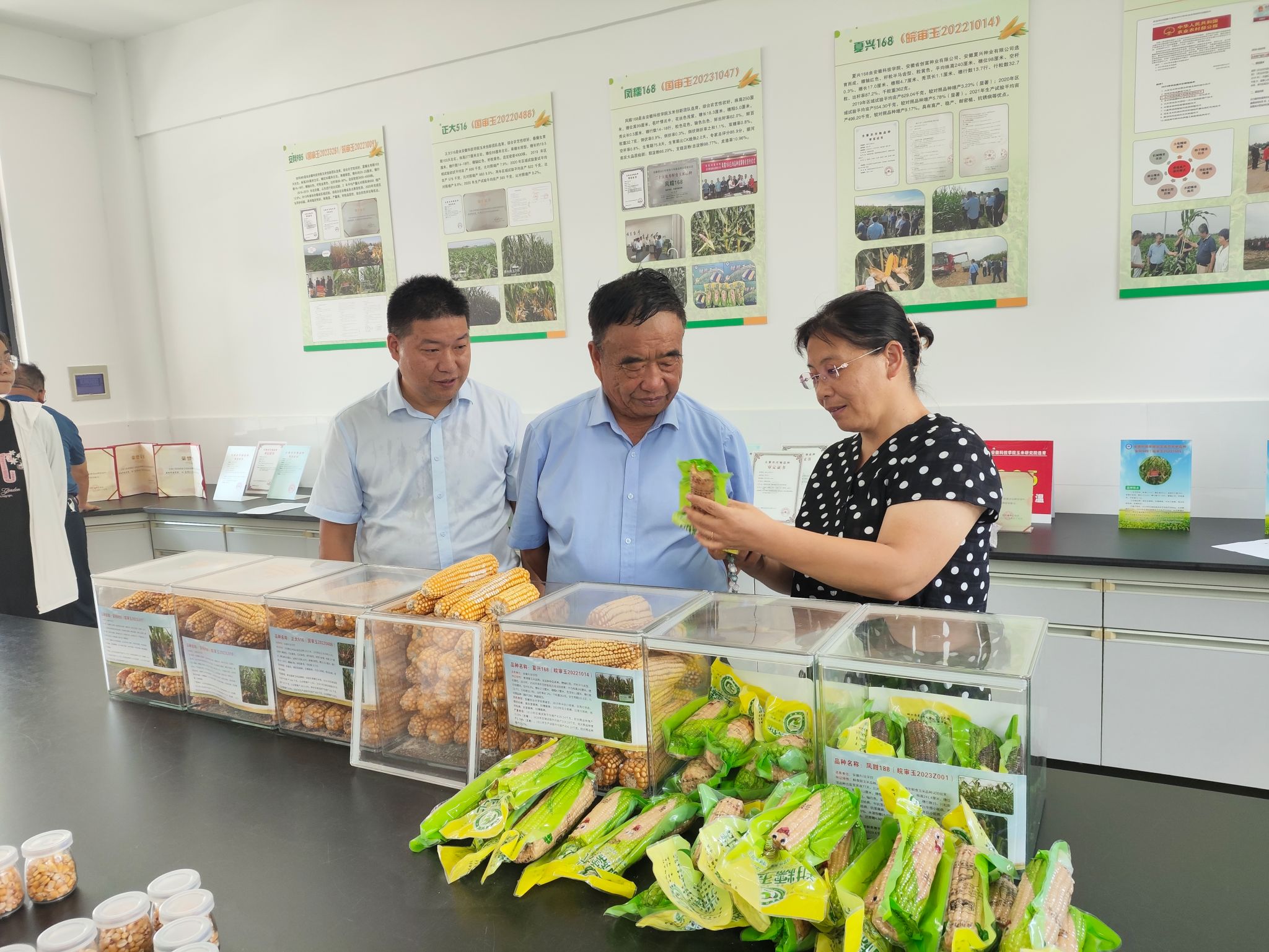 会后,徐淙祥一行走进学校耕读教育实践基地参观,对我校基地建设和传承农耕文化所做工作给予了大力赞扬,并在玉米地里向实习实践的学生们介绍自己的玉米种植经验和智慧农业技术应用情况,同时现场讲授了一堂生动的“田野思政课”,鼓励学生们积极参与农业生产实践,为乡村振兴作出自己的贡献。随后,徐淙祥还来到玉米工程研究中心,认真聆听了团队成员对于各玉米品种特性及种质资源库介绍,并围绕玉米育种及栽培、植保方面进行了充分交流。(特约通讯员:杨孝延 摄影:杨孝延 审核:张轶辉 崔广荣)