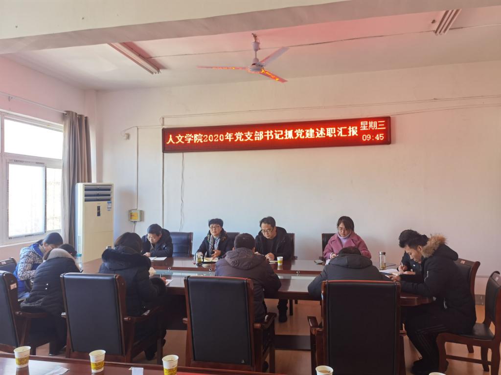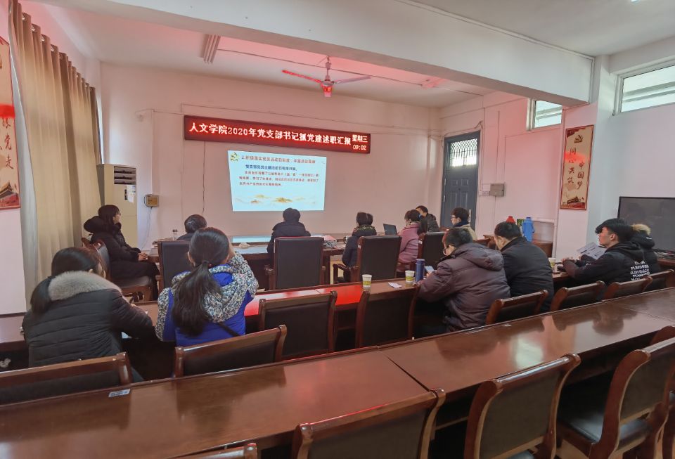 为深入学习贯彻习近平新时代中国特色社会主义思想,落实党的十九大和十九届四中、五中全会精神,坚决落实党风廉政建设各项工作要求,坚持党要管党、全面从严治党。根据《中共财神在线登录官网委员会关于开展2020年度基层党组织书记抓党建述职评议考核工作的通知》文件要求,人文学院于1月13日上午在学院会议室召开2020年度基层党支部书记抓党建述职评议会。学院党总支委员、党支部委员、工会主席、民主党派和无党派教师代表以及学生党员代表参加。会议由党总支书记杜士凤主持。