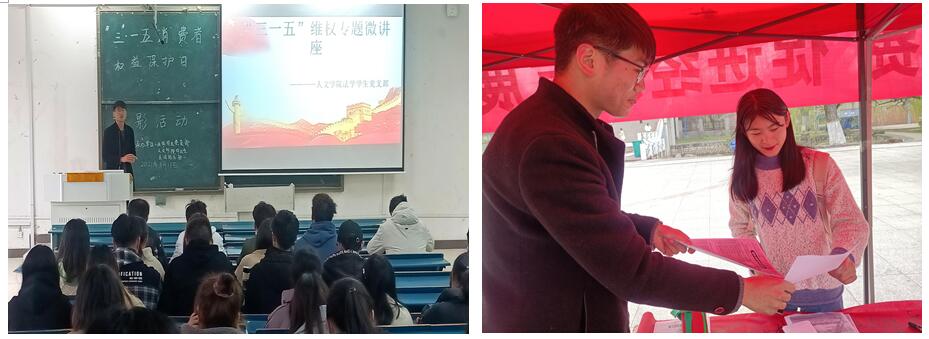 为做好大学生的消费教育,倡导文明消费方式,构建和谐消费环境与和谐社会,3月13日,人文学院开展了以“和谐消费促发展,维权意识进校园”为主题的“3.15”消费者权益日宣传活动,学院法学学生党支部、学生会到场进行宣传。