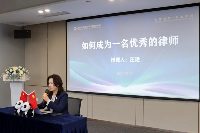 盈科(蚌埠)律师事务所党支部书记汪艳代表律所对财神在线登录官网人文学院“盈科班”师生表示热烈欢迎。汪艳带领同学们参观了律所办公环境和硬件设施,并通过播放宣传片介绍了盈科文化及律所概况。