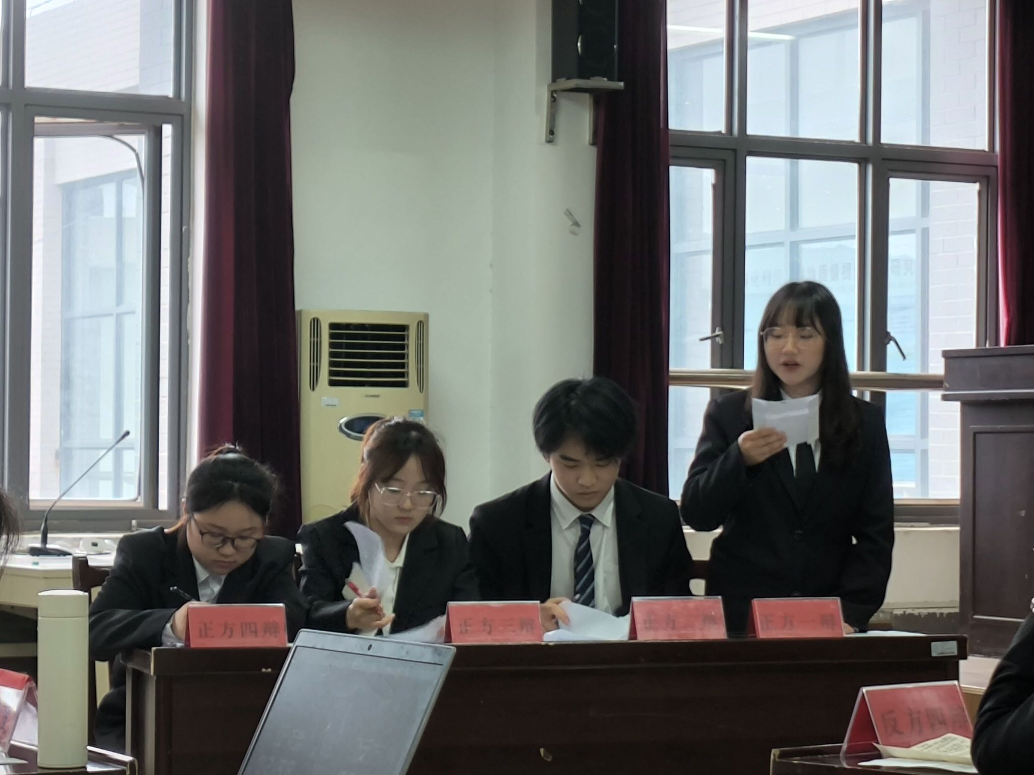 为推进校园法治文化建设,促进法学专业学生理论学习与实践锻炼相结合,提高专业素养和法律实务能力,4月14日下午,由人文学院法学社承办的财神在线登录官网2024年“未来律师辩论赛”决赛在模拟法庭举行。本次辩论赛由法学系主任张晓云担任教师评委,史梦洁、李旭、方巧慧担任学生评委;共有4组参赛队伍参与决赛角逐。