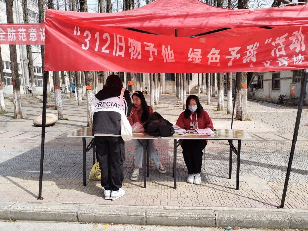为践行绿色低碳理念,传递节约环保意识,建设绿色美好校园。人文学院青年志愿者协会于3月12日在东一对面水杉林下举行“旧物予我,绿色予你”活动。