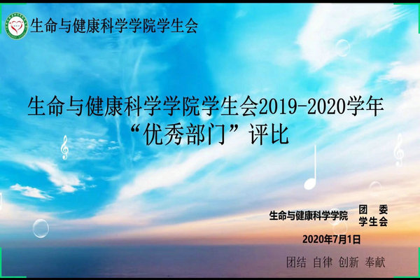 为促进学生会内部建设,加强沟通交流,7月1日晚,生命与健康科学学院于腾讯会议举办学生会优秀部门评比活动。学院分团委书记王传林出席活动,学生会主席团代表及各部门负责人担任评委,比赛由刘文静主持。
