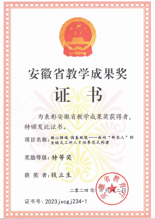 科学研究:近五来,学院共承担各类科研项目60多项,其中国家级项目5项,省部级项目10多项,厅局级项目20多项;在国内外各类学术期刊上共发表学术研究论文300多篇,其中SCI论文100多篇,Ⅱ类期刊近100篇;获批地方性食用菌标准4项,微生物菌种鉴定2项,地方品种1个,行业企业标准1项,获发明专利20多项,实用新型专利20多项;获得安徽省科学技术奖一等奖1项,安徽省级科技成果二等奖2项,三等奖1项,合肥市科学技术奖二等奖1项。
