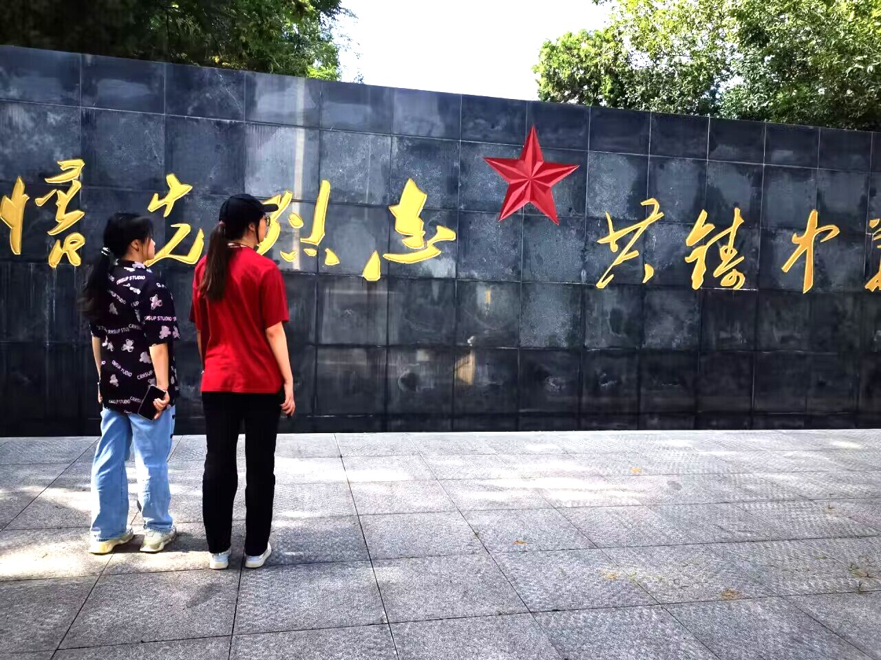 凤阳县烈士陵园始建于1959年,位于府城镇东北部第一山南麓,占地面积约199.8亩,内建有烈士纪念碑、烈士陵墓、英烈广场、展示厅等纪念建筑,团队成员们进入烈士陵园后被陵园中庄严肃穆的气氛所感染。目前长眠在烈士陵墓内的凤阳籍革命烈士85名,无名烈士270名,团队成员们看着一尊尊墓碑,无一不为之动容,正是有这一位位烈士的牺牲,才换来如今的美好生活。烈士陵园的展示厅主要以红色为主基调,团队成员们在展示厅内驻足观望良久,阅读着一个个英雄故事、观摩着一件件战争时期的老物件,英雄的形象仿佛鲜活起来。最后,团队成员们怀着敬仰之情站在革命雕塑前,向革命先烈行三鞠躬礼,默哀三分钟,共同凭吊烈士英灵,向长眠在此的烈士表达深深的哀思和无尽的怀念。