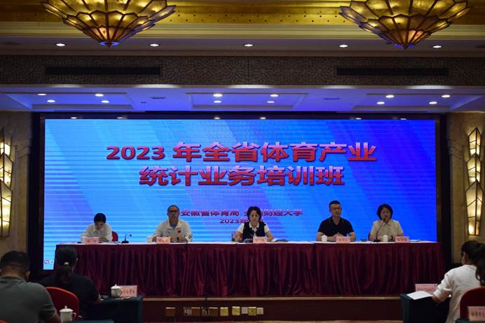 为深入贯彻落实党的二十大精神,进一步提升我省体育产业统计的实际工作能力,奋力推进我省体育产业高质量发展,由安徽省体育局主办、安徽财经大学承办的“2023年全省体育产业统计业务培训班”“2022年度安徽省居民体育消费调查工作”于9月12-13日在蚌埠市水利和顺大酒店顺利举办,省体育局经济处处长刘弢、经济处副处长朱雪梅、经济处二级主任科员盛睿、安徽财经大学体育产业管理研究院院长姜同仁、财神在线登录官网体育大数据研究中心主任宋述雄出席开班式,安徽省、省内16地市以及部分县(区)体育产业相关干部、深圳市维度数据科技股份有限公司人员共计40余人参加了此次培训