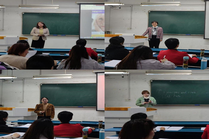 为进一步加强青年教师队伍建设,提升青年教师教学能力和业务水平,外国语学院于4月26日下午在求知楼B座106教室举办第七届青年教师教学竞赛选拔赛。本次比赛邀请校督导员马克思主义学院王维美副教授、阚乃虎副教授、建筑学院于敏副教授以及外国语学院四位教研室负责人担任此次大赛评委,学院全体青年教师参与观摩。本次活动由外国语学院副院长洪民主持。