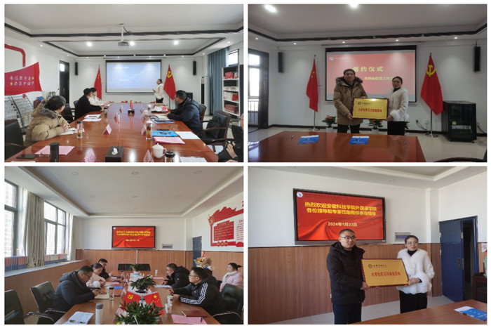 为进一步加强英语(师范)专业学生的教育实习,拓展师范毕业生就业渠道,1月23日,外国语学院先后赴合肥南亚理工技工学校、合肥一六八新店花园学校考察交流,并举行了大学生实习与就业基地签约及授牌仪式。外国语学院党委书记蔡为青、副书记张海亮、副院长洪民、党政办主任陈慧中参加活动。