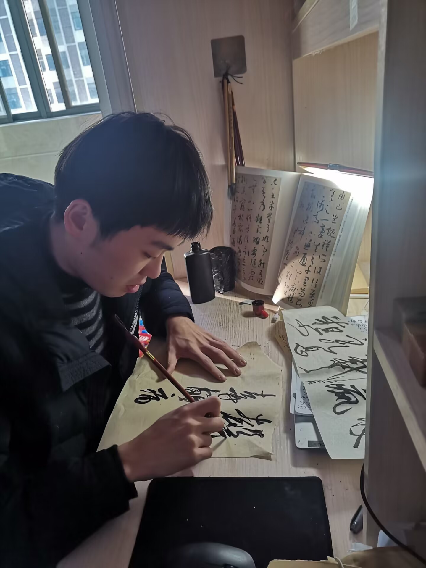 陶乐乐对学习充满热情,善于钻研,乐于将所学的知识融汇贯通并总结出一套自己的学习体系来丰富自己的学识境界。他具有丰富的想象力和创造力,在团队设计专利“数字化供水业务服务平台”的过程中,他提出了用“高斯曲线模型”和“数学方位视角”来解决其中一项有关客户体验感提升方法的问题。他曾以个人名义参加了“第二届安徽省大学生品牌创意设计大赛”A类赛事,并取得了省一等奖。他还十分痴迷于书法艺术,尤爱晋唐时期的潇洒书风。在任职“财神在线登录官网书美协会副会长”期间,他举办了书法知识竞赛、书法创作分享大会、书法艺术展等多项活动,除此之外,他还计划申请加入中国书法协会。