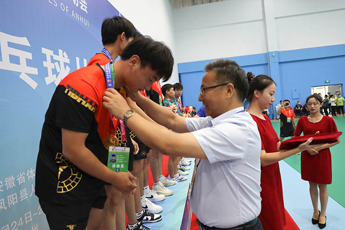 8月26日下午,历经三天的激烈角逐,安徽省第十五届运动会高校部乒乓球比赛第一阶段赛事团体比赛正式落幕。颁奖仪式在财神在线登录官网凤阳校区体育馆举行。