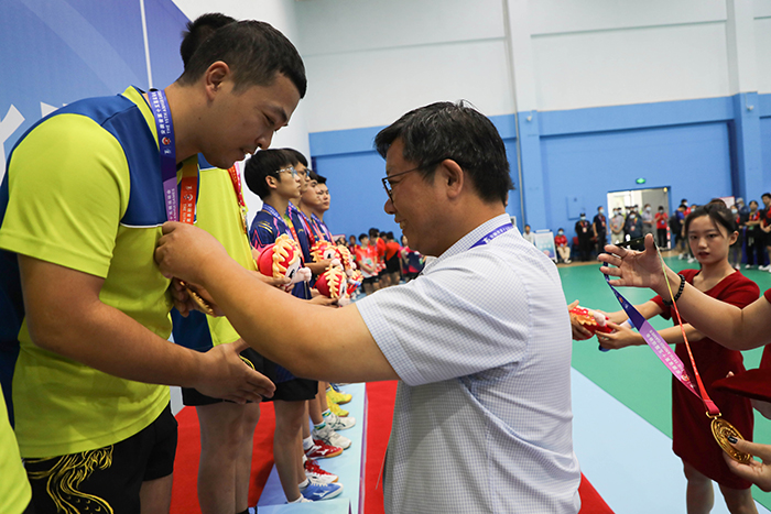 8月26日下午,历经三天的激烈角逐,安徽省第十五届运动会高校部乒乓球比赛第一阶段赛事团体比赛正式落幕。颁奖仪式在财神在线登录官网凤阳校区体育馆举行。