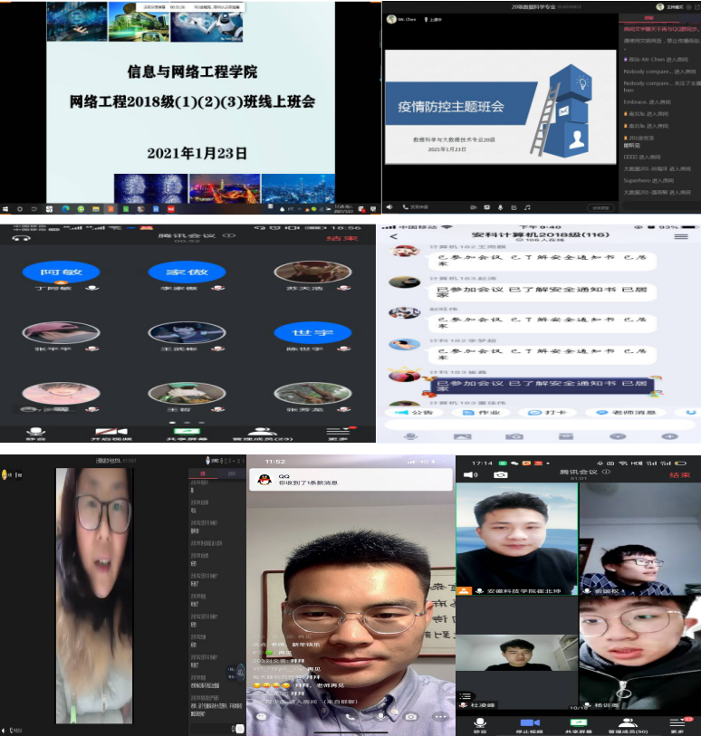 为号召广大学子团结一致打好疫情防控阻击战,实现返校后的“零感染”,争做健康的守护者、战役的践行者, 1月22—23日,信息与网络工程学院全体专兼职辅导员利用腾讯会议、钉钉、QQ群课堂、超星学习通等线上方式,集中召开疫情防控工作主题班会,开展安全教育。