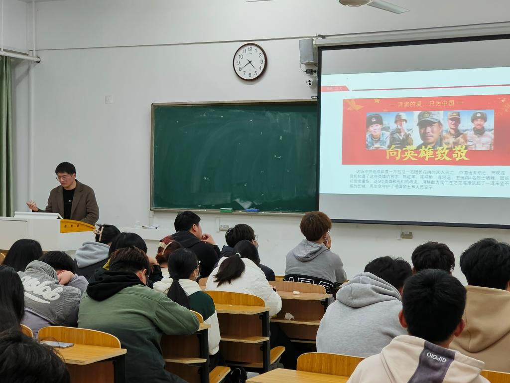 在班会课上,许磊首先回顾了在不同时代,一代又一代的中国青年走过了历史的云烟,在各自的时代里挥洒着青春与热血,践行着爱国主义精神,然后以《责任与成才:弘扬新时代爱国主义精神》为主题,紧密结合新时代大学生的成长成才,引导学生充分地认识到“今日之责任,不在他人,而全在我青年”,要真切地践行爱国主义精神,用实际行动向所处的时代交出自己的答卷。