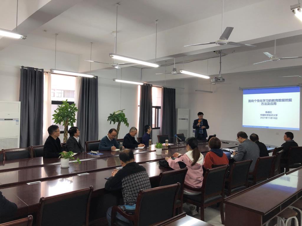 报告会上,陈恩红教授以《面向个性化学习的教育数据挖掘方法及应用》为题,重点介绍团队在面向个性化学习的数据挖掘领域开展的工作,包括教学资源表征、学习行为数据分析和个性化推荐等关键技术及应用。详细讲解了基金申报的立项依据与科学问题、研究内容与方案、创新与预期成果、研究团队、研究基础等关键问题;运用自身实例解读了如何挖掘基金申请过程中的科学本质,并就与会教师在项目申报过程中存在的问题进行了详细解答。