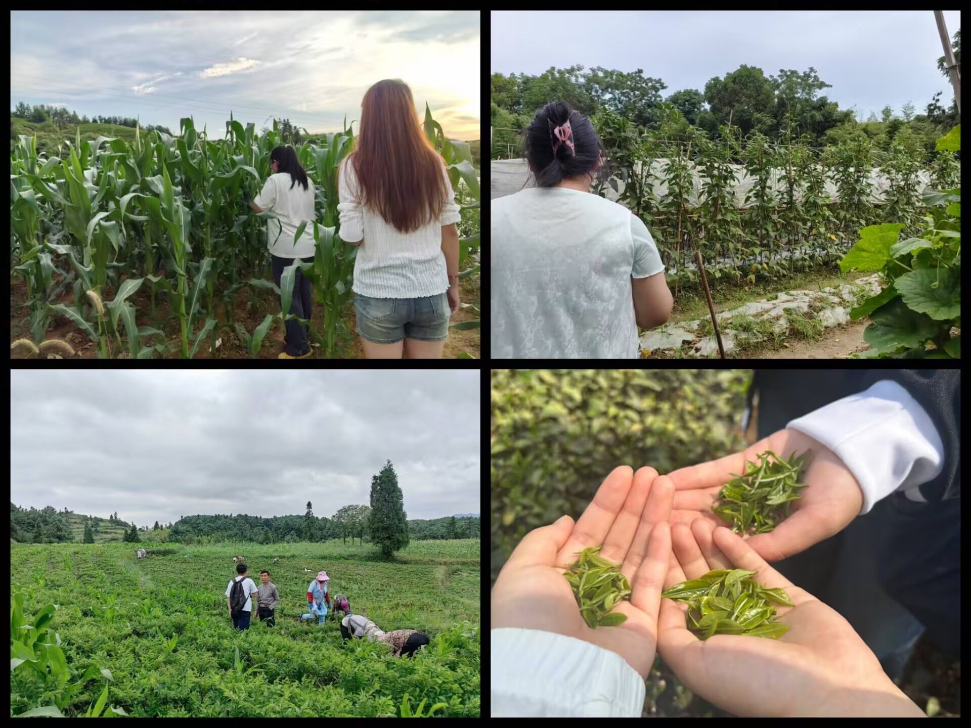 在数据采集环节,团队成员充分发挥地理信息科学专业优势,深入泗溪村周边农业区域,采用实地探查与专业测量相结合的方式,对农作物种植种类、规模及分布情况进行了详细记录。数据采集组的同学们顶着烈日穿梭在茶园、香榧林与水稻田间,用皮尺丈量地块面积,用pH试纸检测土壤酸碱度,用测距轮记录作物种植密度,每一块农田的地形坡度、土壤质地分层、作物叶片颜色都被详细记录在笔记本上,同步拍摄的土壤剖面照片与作物生长状态图。了解到泗溪村“山地种香榧、坡地植茶叶、平地育水稻”的种植格局。