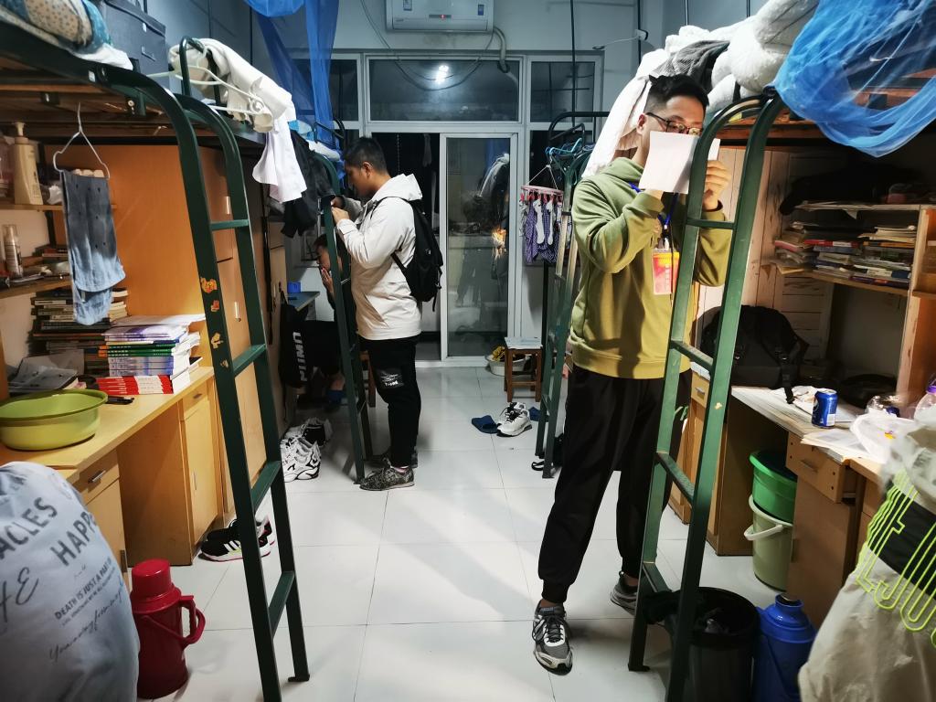 寝室卫生安全事关学生安危、责任重大,学院对此一直常抓不懈。定期检查既体现了学院对寝室卫生安全管理的高度重视,又为同学们营造一个健康温馨、和谐文明的学习生活环境起到了促进作用。(特约通讯员:吴国良 摄影:甘涛 审核:李孟良)
