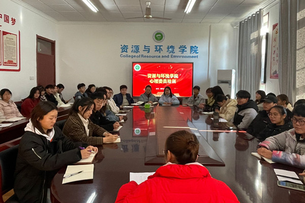 为全面提升心理委员能力水平,保障学院心理健康教育工作顺利开展,2021年12月2日中午,资源与环境学院于会议室召开心理委员培训会议,全体心理委员参加培训,培训由心理辅导老师杨小晗主持。